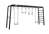 Met schommels, ringen, een klimtouw en een monkeybar-element.